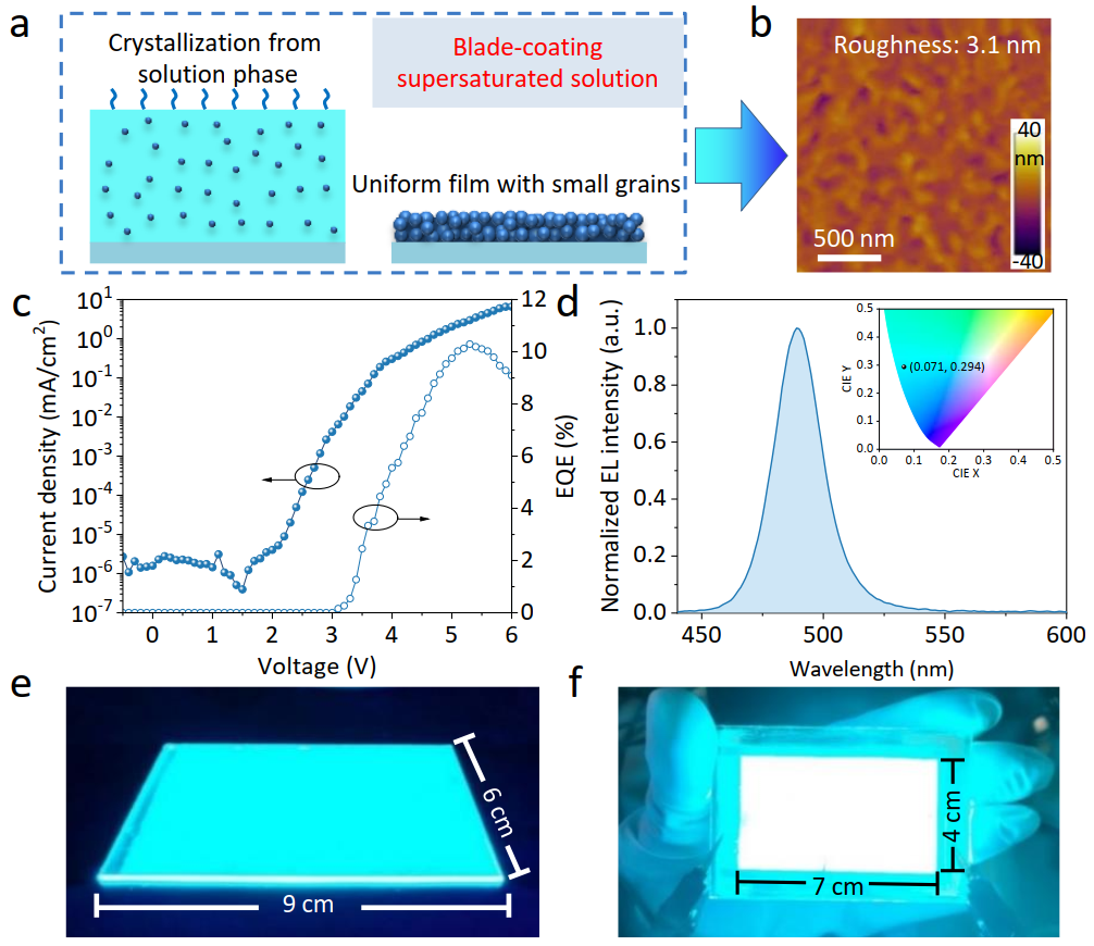 中国科大在制备大面积天蓝光钙钛矿LED领域中取得重要进展