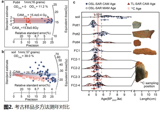 自上世纪五六十年代牛津大学在陶器中使用热释光方法以来,释光技术在考古领域的应用得到了迅速发展。单片再生法、单颗粒等光释光技术已被用于测定陶器、瓷器、石器 (受热燧石)、烧土、炉窑、砖瓦、炼渣等考古材料的年代,但是受热考古材料中矿物的释光性质尚未开展系统的研究。本研究首次发现并确认了受热考古材料中石英的中组分(medium component)特殊信号与600-800℃加热历史的相关性。针对北村遗址采用OSL-SAR与TL-SAR方法,设计了独立的释光测年程序,基于R语言统计模型,测算了陶片与红烧土的释光年代,其结果与烧土中分离出的微量灼烧碳屑的碳十四年代一致。研究结果表明,在规范采样及针对性测试条件下,释光测年技术应用在埋藏陶器、烧土类考古受热材料的年代学研究中具有高准确度的优势,并有望确定最后一次考古受热事件(如祭祀、焚烧、烹煮等)的高精度年代。