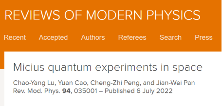 由于在远距离量子通信特别是“墨子号”量子卫星方面所取得的一系列具有开创性意义的工作,潘建伟等受邀为《现代物理评论》撰写的这篇46页的综述论文,全面介绍了国际空间量子科学研究近二十年来取得的成就,重点阐述了“墨子号”量子科学实验卫星从前期关键技术攻关,包括卫星系统、科学应用系统等六大系统的量子科学实验卫星的建设和研制,到卫星在轨运行后所取得的系统性科研成果,为国际学术界提供了宝贵的资料。