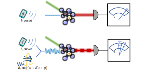 微波在人类生活和科学研究中无处不在。日常生活中,移动通信所使用的电磁波便属于微波范畴,发展微波测量技术对无线通讯的发展有重要价值;科学研究中,实现对高频微波的高灵敏测量能够为高场高频磁共振谱学、太赫兹成像、甚至天文学观测提供基础支撑。利用从原理上革新的量子传感技术能够大大提升微波的测量灵敏度,在过去的十几年中得到了广泛的研究和发展。目前,常见的量子传感器包括里德堡原子、原子磁力计、超导量子干涉仪、金刚石NV色心等。其中NV色心体系因独特的载体稳定性和室温大气环境兼容性,成为极具发展前景的固态量子传感器,提升探测灵敏度是最重要的发展方向之一。