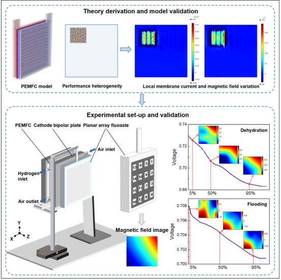 近日,中国科学技术大学工程科学学院精密机械与精密仪器系先进感知、数据融合及智能运维课题组毛磊特任研究员团队在氢燃料电池无损检测方面取得突破性进展,报道了一种基于磁场成像的氢燃料电池无损检测理论及方法,突破现有氢燃料电池性能表征依赖于材料分析、电流分布等侵入式检测手段的瓶颈,研究成果以题为“Imaging PEMFC performance heterogeneity by sensing external magnetic field”发表在Cell Press期刊Cell Reports Physical Science上。
