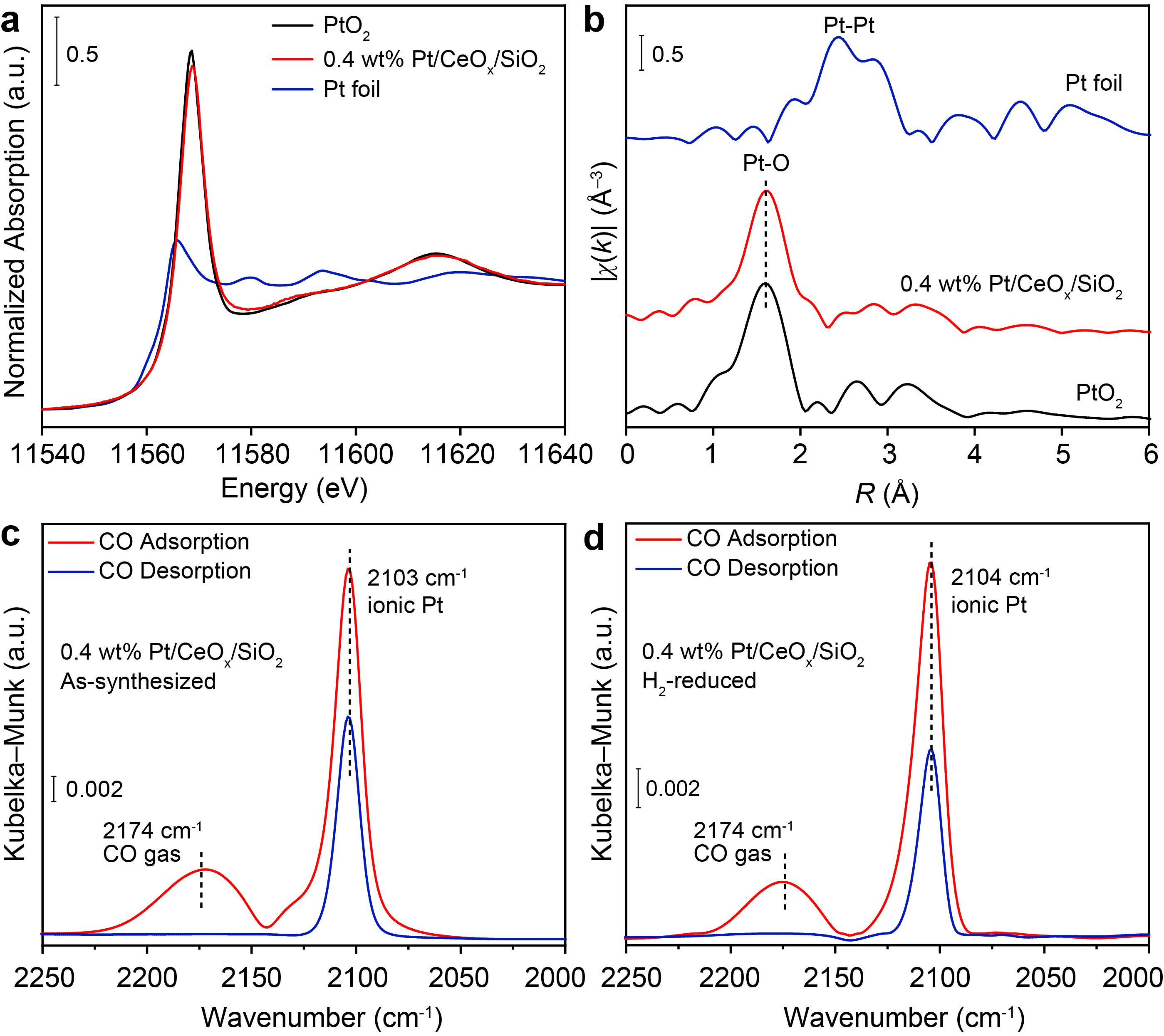 图2.负载在氧化硅上的氧化铈“纳米岛”的结构表征。