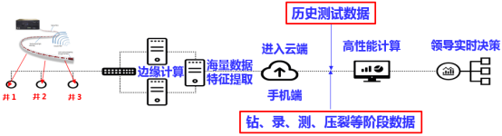 中国科学技术大学工程科学学院渗流实验室通过在页岩气压裂现场安装高精度井场数据采集设备实时采集数据,由边缘计算实时处理数据,在云端进行海量数据特征提取并发送至中国科大完成力学计算,最终发回井场供现场操作人员及时决策,这是一个十分依赖基础研究积累和多学科交叉有机结合整体。