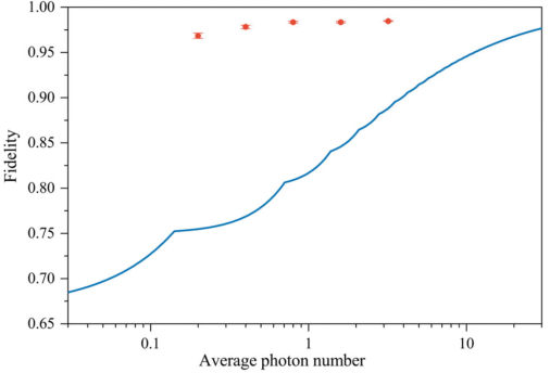 图2:存储保真度。实线是考虑了存储效率和光子统计的经典极限。