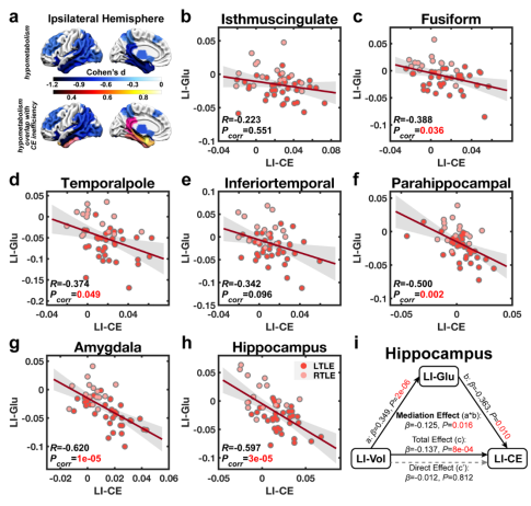 通过正电子发射断层扫描技术,团队证实,这些脑区的基线葡萄糖代谢水平与控制能量消耗水平呈负相关,这也意味着,想要达到同等激活水平,更低的代谢基线可能会带来更高的能量需求,并可通过控制能量这一指标量化。尤其是在海马,更高的结构萎缩与更低的基线葡萄糖代谢、及更高的控制能量消耗相关,并且葡萄糖代谢水平可以完全中介结构萎缩与控制能量消耗二者间的联系。这也提示,海马结构损害可能带来基线葡萄糖代谢的降低,并最终导致在维系大脑动态进程时更高的能耗成本(图3)。