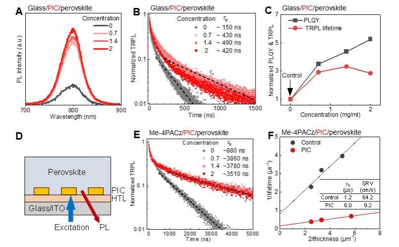 图3.PIC对于钙钛矿界面和体相非辐射复合的抑制