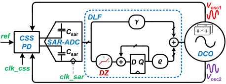 图1.论文提出的电荷舵采样全数字锁相环(CSS-ADPLL)架构