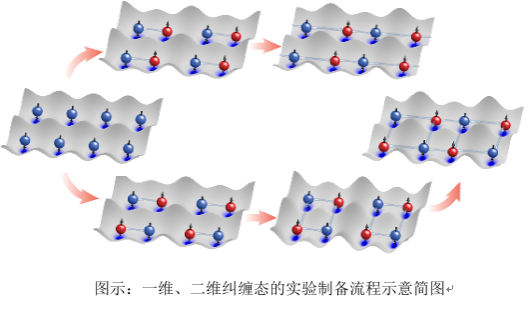 中国科学技术大学潘建伟、苑震生等与清华大学马雄峰、复旦大学周游合作,使用光晶格中束缚的超冷原子,通过制备二维原子阵列、产生原子比特纠缠对、连接纠缠对的分步扩展方式制备了多原子纠缠态,并通过显微学技术调控和观测了其纠缠性质,向制备和测控大规模中性原子纠缠态迈出重要一步。这项研究成果近日发表在国际权威学术期刊《物理评论快报》上,美国物理学会“Physics”以《光晶格量子计算机的里程碑》(Milestone for Optical-Lattice Quantum Computer)为题作了报道。