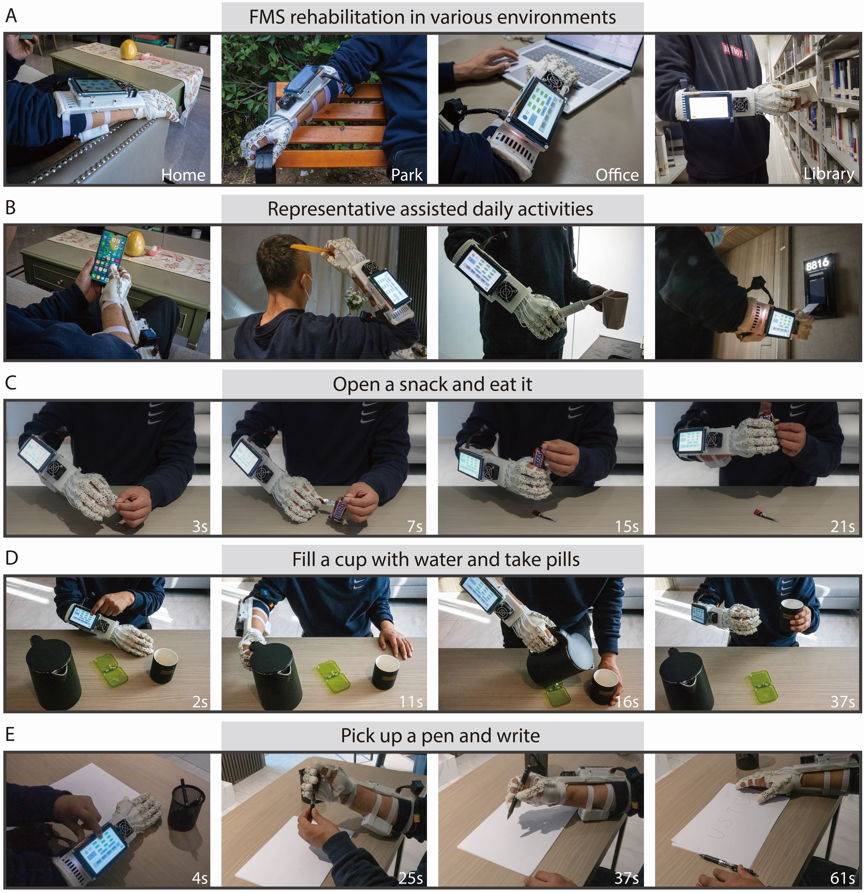 图3.柔性康复手套机器人的多场景应用与生活辅助功能