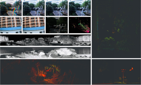 研究团队选取代表性高空作业场景,收集了包括一天中的不同时间和天气等多种条件下的数据,以确保高空作业机器人的全天候运行。周围的物体包括高压线、树木、建筑物、道路等。高空作业机器人平台的轨迹包括空中的三维平动、俯仰和旋转。
