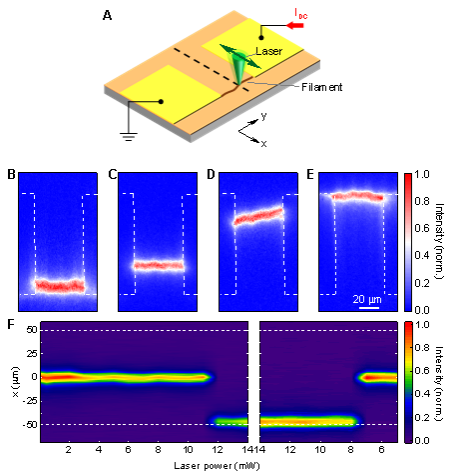 图2.外加电场和激光调制下的VO2导电丝形成的金刚石NV量子成像