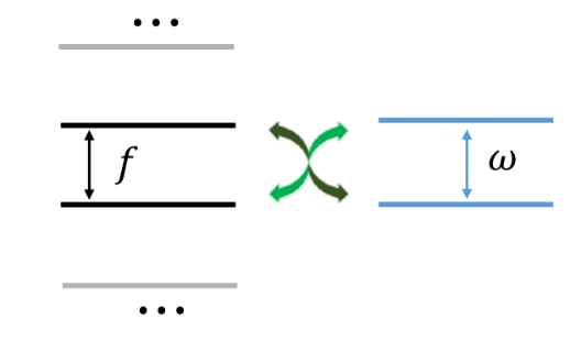 这种序列会在NV色心上产生一系列等间隔的能级,间隔大小为调制频率f,以黑色箭头标示。实验中扫描调制频率f,使其与被测目标的能级ω匹配,发生共振。