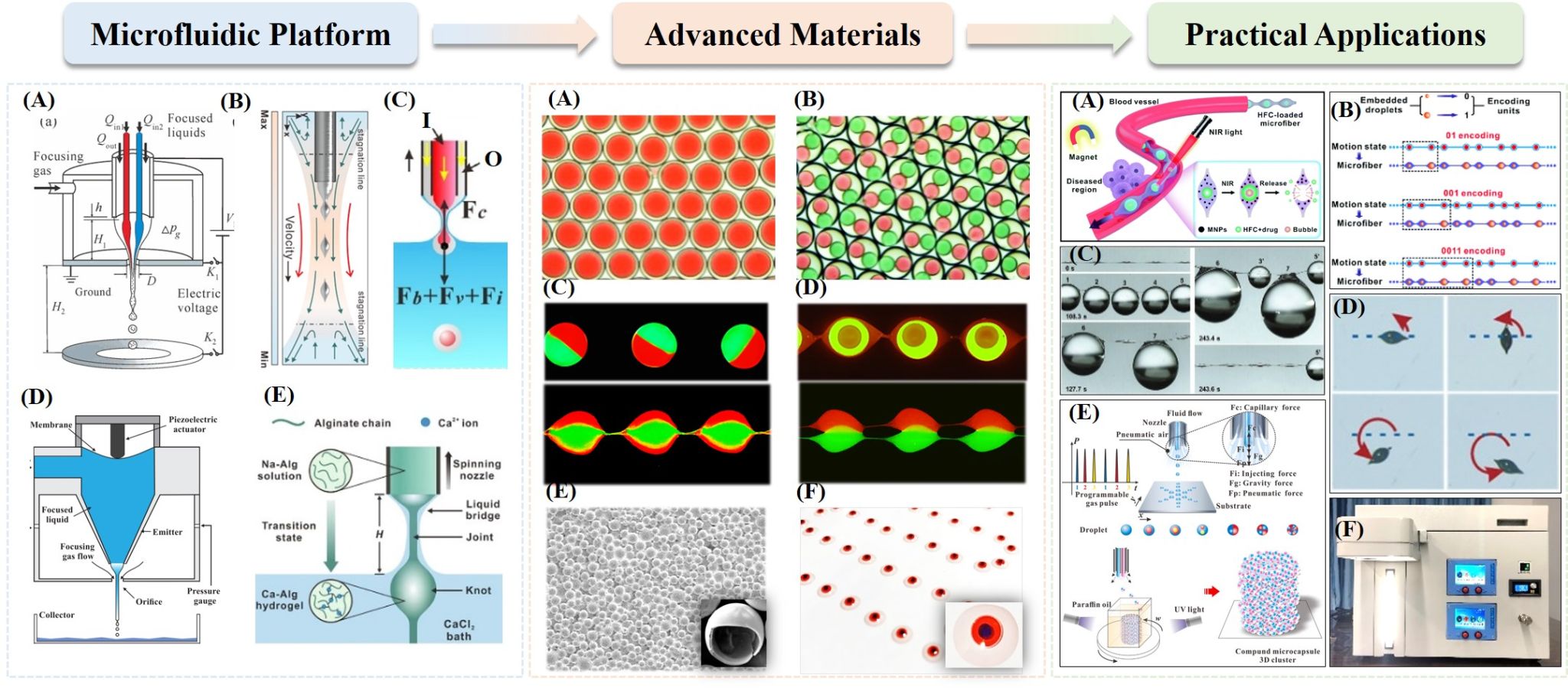 图2 微流动技术开发、先进材料制造和实际应用展示