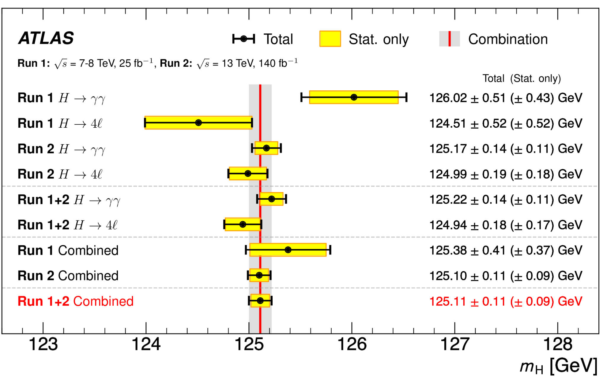 [1]ATLAS Collaboration, Combined Measurement of the Higgs Boson Mass from the H→γγ and H→ZZ*→4?Decay Channels with the ATLAS Detector Using √s = 7, 8, and 13 TeV pp Collision Data, Phys. Rev. Lett. 131 (2023) 251802, https://doi.org/10.1103/PhysRevLett.131.251802
