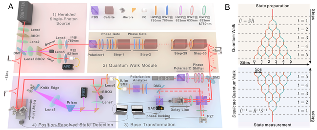 我校郭光灿院士团队在光量子行走领域取得重要进展。该团队李传锋、许小冶、韩永建等人与合肥综合性国家科学中心董少钧以及南方科技大学翁文康等合作,利用人工神经网络作为开放系统中混合量子态的有效拟设,并通过改进自然梯度下降算法有效提高神经网络的训练效率,在具有内禀高维结构的开放光量子行走系统中,首次实现高保真度混合量子态重构。相关成果3月15日发表在国际知名学术期刊《科学·进展》上。