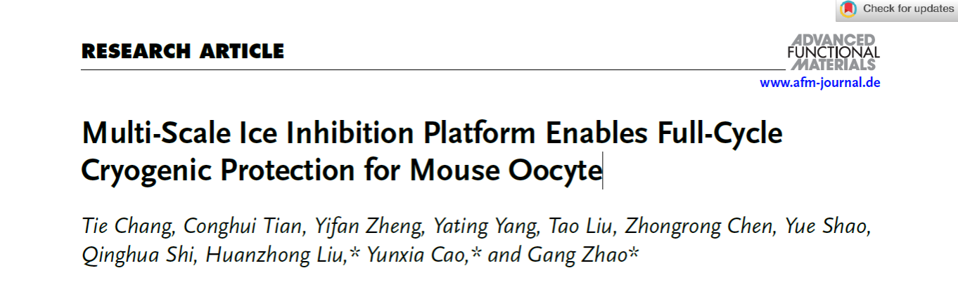 相关研究成果以“Multi-Scale Ice Inhibition Platform Enables Full-Cycle Cryogenic Protection for Mouse Oocyte”为题发表于国际期刊《Advanced FunctionalMaterials》。该结果对基于卵细胞的女性生育力低温保存具有重要的参考价值。