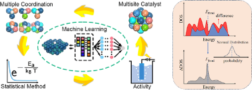 无序固溶体合金具有丰富的催化位点,因此可以被用于催化多种重要的化学反应。然而,也正是由于其多位点的特性,给此类催化剂活性位点的局部结构解析和总体活性的理论预测带来巨大的挑战。具体表现在,模拟时采用随机位点策略,数据量庞大,需要消耗大量的计算资源,且难以直接分析结果。使用机器学习辅助密度泛函理论计算的策略已被证实可以大幅提高计算效率,同时多种统计方法也在部分合金催化体系中被证明是分析大量数据的有力工具。然而,目前对于无序固溶体合金的研究对于总体活性的计算方法仍不全面。因此,发展有效、准确的多位点合金催化剂总体活性的计算描述方法是指导实验上实现合金组分和比例筛选、可控合成的关键。