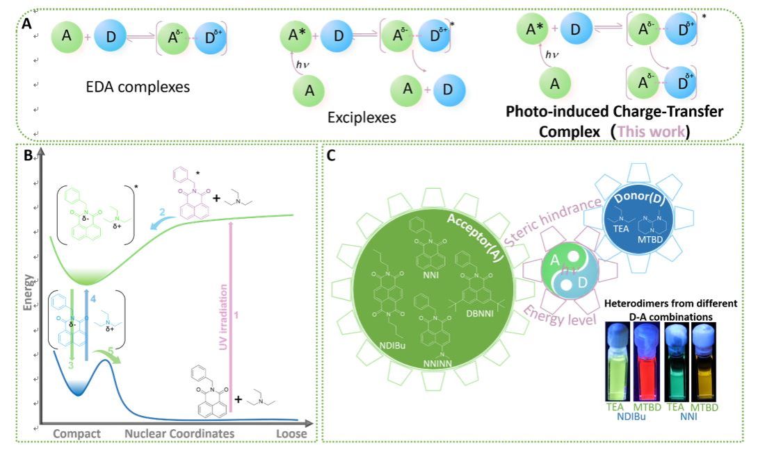 图1.光诱导电荷转移络合物(PCTC)的形成及调控