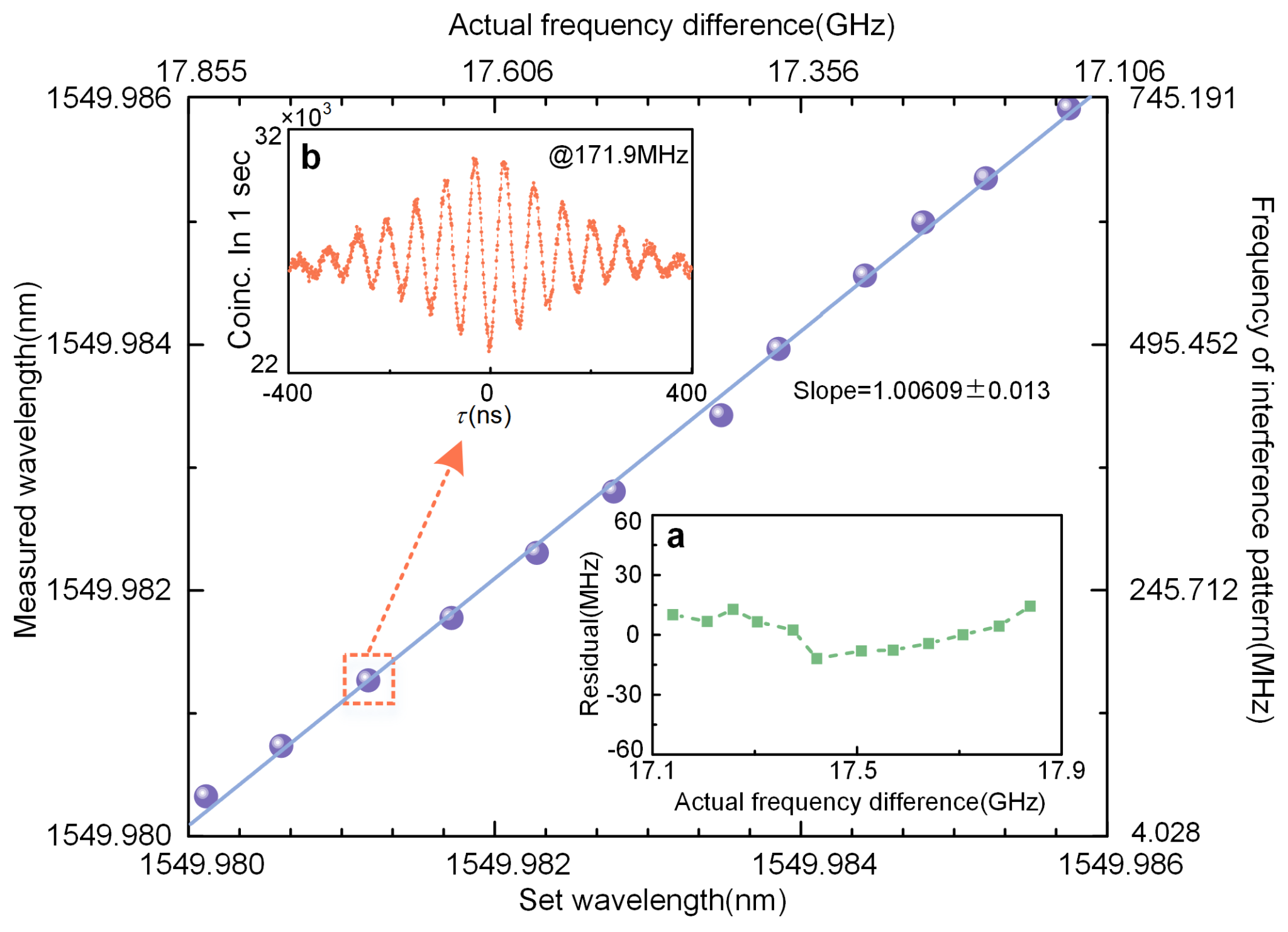 薛向辉课题组利用HOM干涉和高阶量子擦除使得来自不同光源的独立光子展现出量子干涉现象,并基于该理论开发了一种基于上转换探测器的双光子干涉大气激光雷达系统。这种方法具有单光子灵敏度、高量子效率、大检测带宽和多波长适用性。使用量子擦除结合光学压缩采样方法,该量子雷达系统能够以MHz的采样率记录超过17 GHz带宽(对应13km/s)的光学信号,解决了超高速目标连续检测中弱信号的高采样率和大数据存储量问题,为实现高达数十公里/秒的超高速连续速度检测铺平了道路。