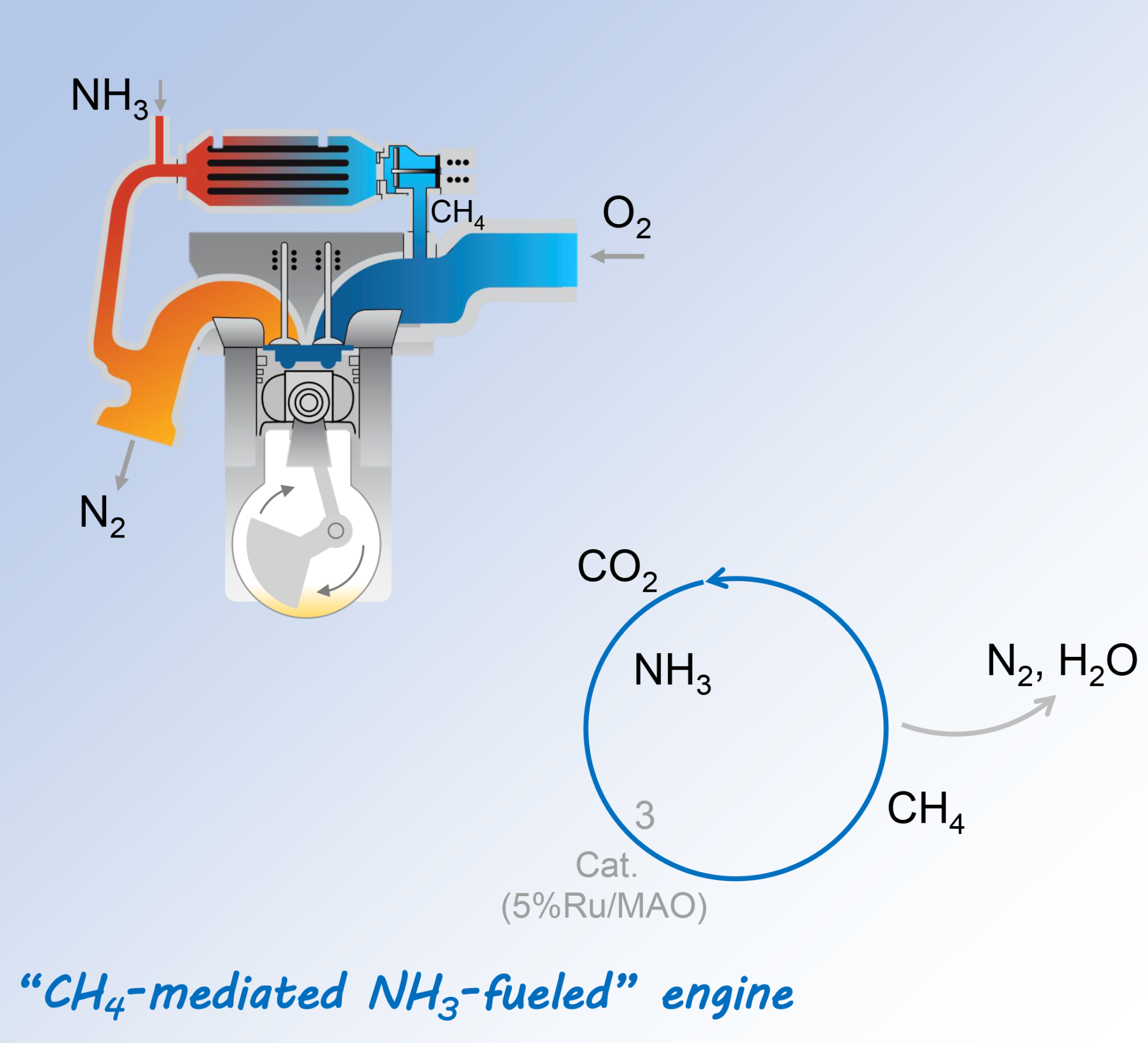 图1.研究团队提出的甲烷介导的氨动力发动机概念图