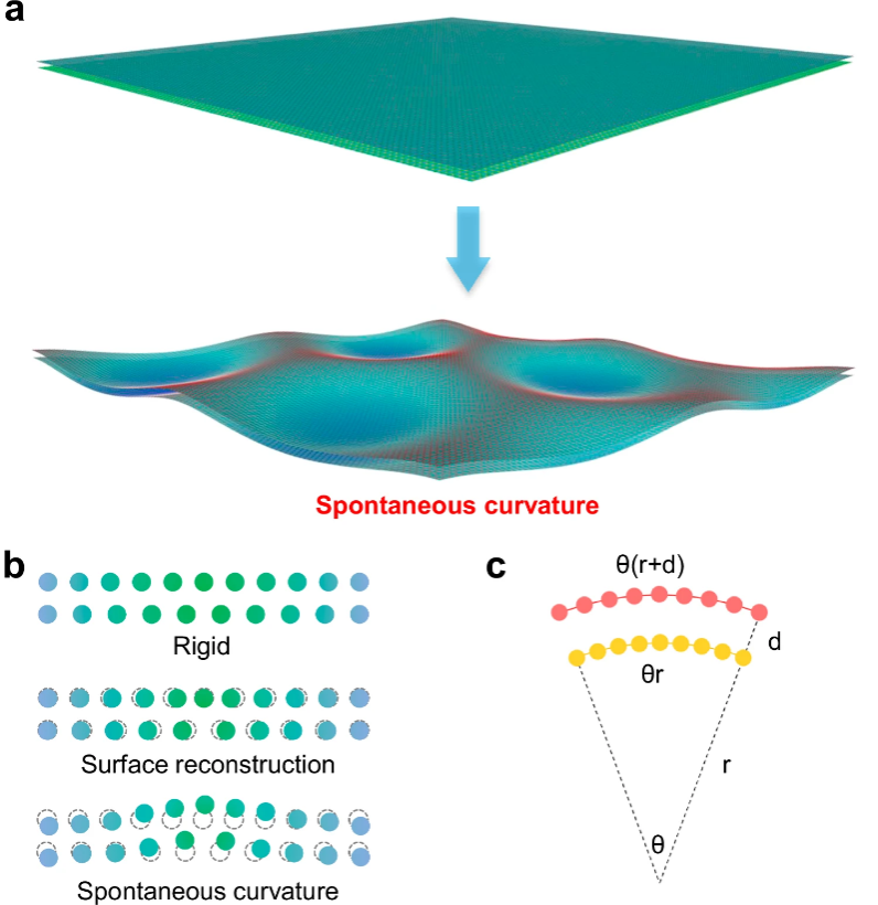 近日,中国科大苏州高等研究院钟志诚老师课题组在二维异质结界面结构领域取得新进展,相关研究成果以“Spontaneous curvature in two-dimensional van der Waals heterostructures”为题发表在国际知名期刊Nature Communications上。