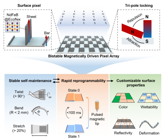 图1.可快速重编程和稳定自维持的磁控功能表面
