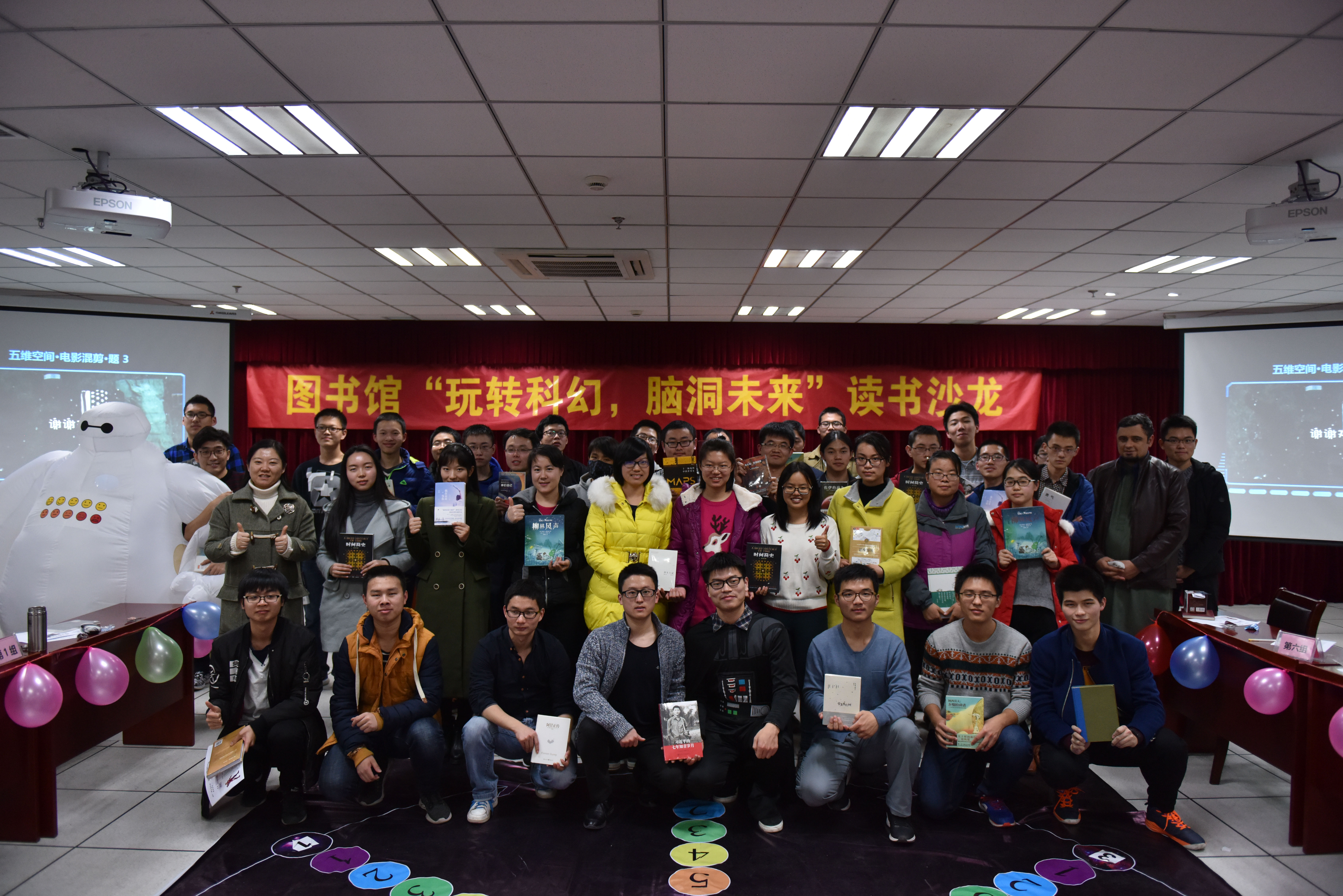 为了丰富校园文化活动,激发大学生读书兴趣,营造浓郁的读书氛围,同时为广大同学提供相互交流的机会,校图书馆志愿服务分队与校科幻协会、惊蛰文学社、爱乐协会、摄影协会联合举办了以科幻为主题的“玩转科幻,脑洞未来”读书沙龙活动。