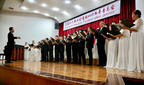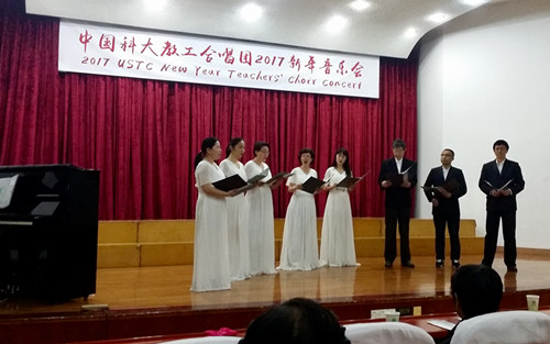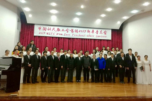 1月7日下午,我校教工合唱团2017新年音乐会在东区水上报告厅举行。党委副书记兼工会主席蒋一教授,原校工会主席龚流柱教授,以及老领导王广训和近200名师生观看了演出。
