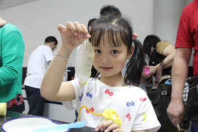 叶脉书签可谓本次科技周活动最受欢迎的项目之一。在工作人员的指导和家长的帮助下,小朋友们自己动手,制作叶脉书签,最后叶脉书签由制作者本人保存留念。一次动手,一次实践,让科普活动带来的不仅是新奇的知识,更多的是互动产生的快乐。