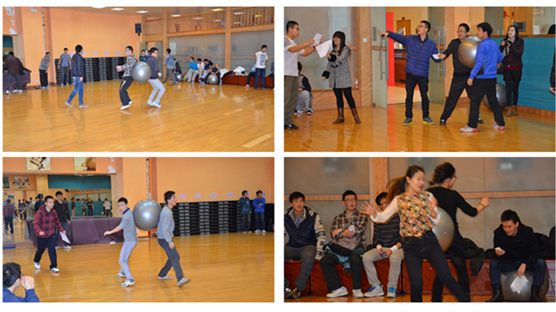 个人项目结束后,大家开始了集体项目——欢乐抱抱走。该项目是由宿舍成员面对面夹着瑜伽球从起点走到终点,到终点后再换一组成员背对背夹着瑜伽球返回起点,球落地了必须返回重新开始。活动过程中,大家笑料百出,在欢乐的氛围中完成共同了集体项目。