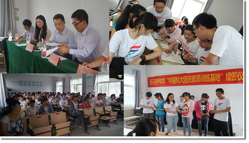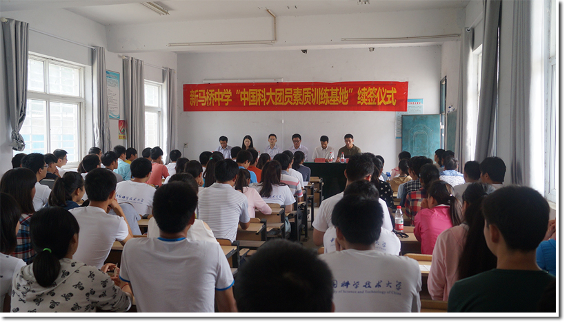 7月6日上午,新马桥中学“中国科大团员素质训练基地”续签仪式在蚌埠市固镇县新马桥中学顺利举行。蚌埠团市委书记季星、中国科大团委副书记张平、新马桥中学校长刘邦庆、固镇团县委副书记刘益群出席续签仪式,当地其他相关领导、老师,服务团全体团员、服务中学师生代表共计一百多人参加了仪式。