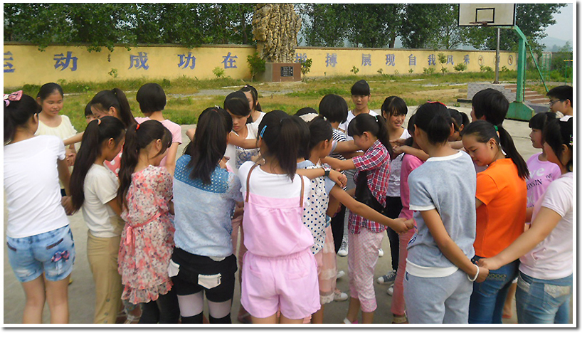 接着是“心手千千结”。经过前面的两个活动,学生们也渐渐放开了。本对于活动不怎么积极的男生们在看到女生们玩得不亦乐乎时也忍不住加入到了活动中来,将本次活动推向了一个小高潮。
