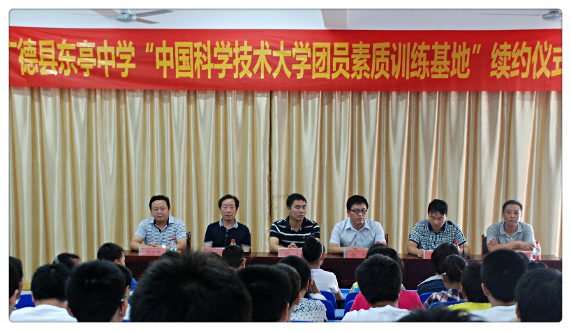 签约前,当地领导表达了对我三下乡团员的关心,以及对科大对当地学生的照拂的感谢,当地领导表示,科大对当地学生的影响很大,例如每年科技活动周邀请当地学生前往科大参观,非常有利于学生们的科学素质发展。而我校代表人员也予以了友好的回应,双方合约签成,东亭中学将继续作为“中国科学技术大学团员素质训练基地”。