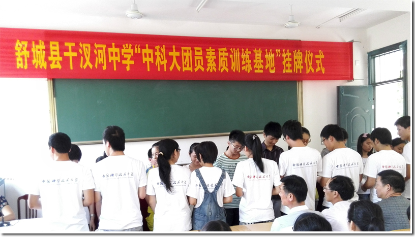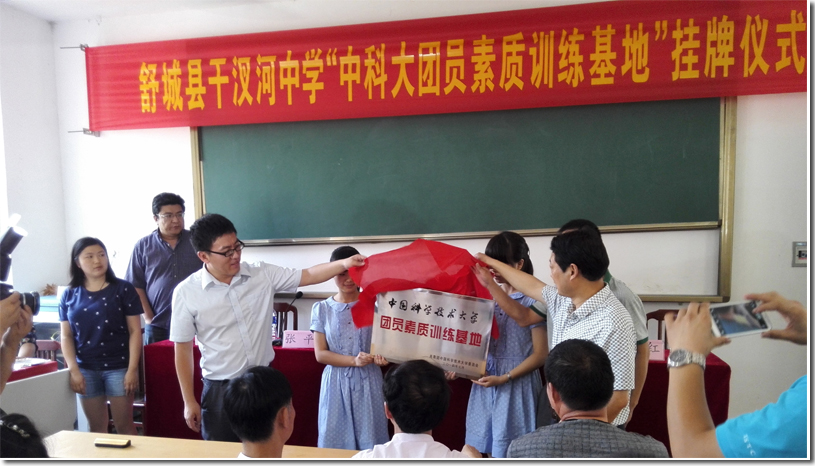 为强化两校关系,增进两校间情感,7月7日上午10时,在舒城县干汊河中学内举行了“舒城县干汊河中学‘中国科大团员素质训练基地’挂牌仪式”。