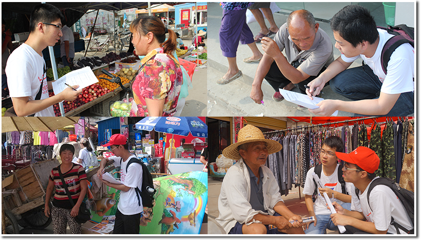 7月8日,“三下乡”物理学院实践团的30位团员分为两支队伍。一支接着前几天的任务,继续走访村民,完成调查问卷;另一支队伍来到新马桥镇上寻找适合于做气象防震减灾科普宣传活动的地点。