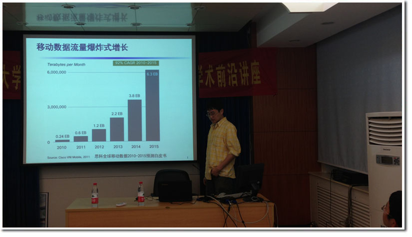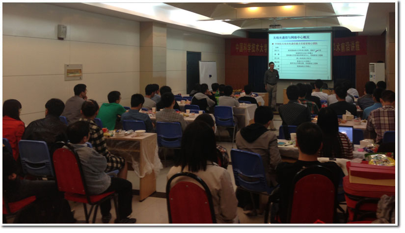 首先上台向大家分享科研经历的是龚晨老师。龚晨老师于哥伦比亚大学获得博士学位之后,曾在高通公司经历了两年的职场生涯。两年的职场生活给龚老师的科研工作开拓了新的方向,在观念上从一直注重于学术研究到学术与实际应用并重的转变。作为中科院无线光通信重点实验室重要负责人之一,龚老师对实验室的具体研究方向、5年之内的规划以及经费的情况一一做了详细的介绍。