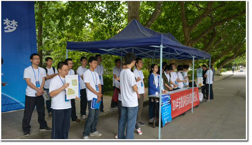 这一天校园内志愿者的身影无处不在,他们为参观者们提供全程接待服务。首先前来参观的人们在总服务台进行签到,而后志愿者导游们热情洋溢地带领他们参观实验室,在实验室里,具有丰富专业知识的志愿者深入浅出地介绍着相关知识。除此以外,还有处理突发事件的应急服务队的志愿者们随时待命,确保了活动的安全和秩序。志愿者们如此细致而周到的服务让每一位参观者都尽情地畅游在科学海洋之中。