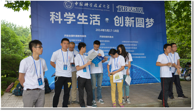 5月17日,以“科学生活,创新圆梦”为主题的中国科学技术大学的科技周活动正式拉开序幕。虽然天空并不晴朗,但是这丝毫没有影响到青年志愿者们的热情和广大中小学生和市民来参观科大的喜悦心情。