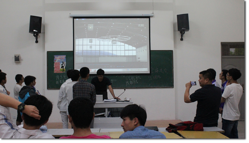 活动的最后环节,由李飞给同学们带来关于飞行器的报告。他的PPT中有许多酷炫的视频,给同学们展示了各种奇妙的飞行器结构。看着一个个不可思议的创意,同学们不禁发出惊呼和赞叹,都在台下小声议论着飞行器的话题,现场气氛非常火爆。