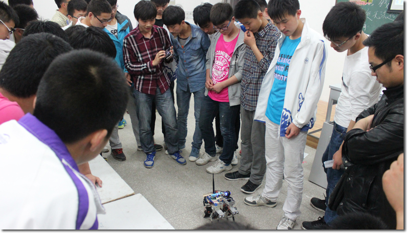 5月14日中国科学技术大学学生机器人俱乐部的李飞、陈天彤、王欣睿、袁涛前往安徽省阜阳市第三中学开展了“机器人进中学”活动。本次活动意在通过举办机器人知识讲座和现场演示机器人来激发中学生对机器人的兴趣,吸引更多的中学生关注机器人。