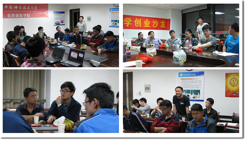 创业是当今时代的主题之一,也是广大青年心存的梦想,青年时代正是创业的黄金时代,创业沙龙的举办为中国科学技术大学的学生搭建了一个实现梦想的交流平台,让他们在今后的学习和创业道路中互相帮助,共同提高,争取早日实现自己的理想。