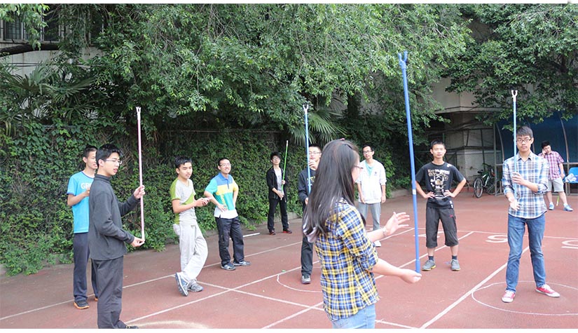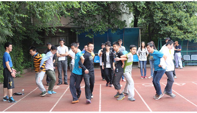 趣味运动会共有四个项目,分别是双人夹球跑、平衡杆、传七令以及交通堵塞。其中,双人夹球跑让两人背对背夹气球前进,要求同学们有很强的团队协作能力,相互信任,彼此步调一致。平衡杆是让大家用食指撑着一根轻竹竿,强调的是同学个人的平衡能力,并希望平衡感较强的同学可以帮助其他同学。而传七令和交通堵塞则分别考验的是同学们的反应速度以及组长的领导组织能力。