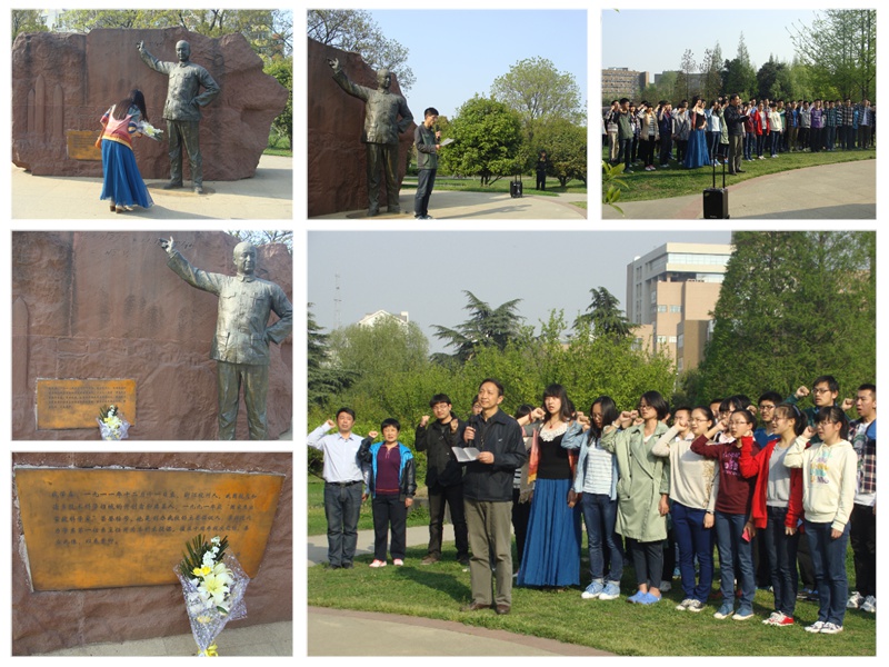 4月4日下午,信息学院在西区钱学森先生的雕像前举办了“缅怀先辈,献身科学”青春励志活动,本次活动是学院本学期举办的系列主题教育活动之一,也是为了积极响应学校号召而开展的清明节专项纪念活动。活动分为献花、宣读倡议书及主题宣誓三个部分。院党委书记唐安渝、班主任、院团学干部及部分同学参加了活动。活动由院团委书记袁国富主持。