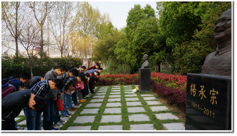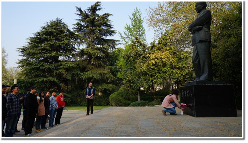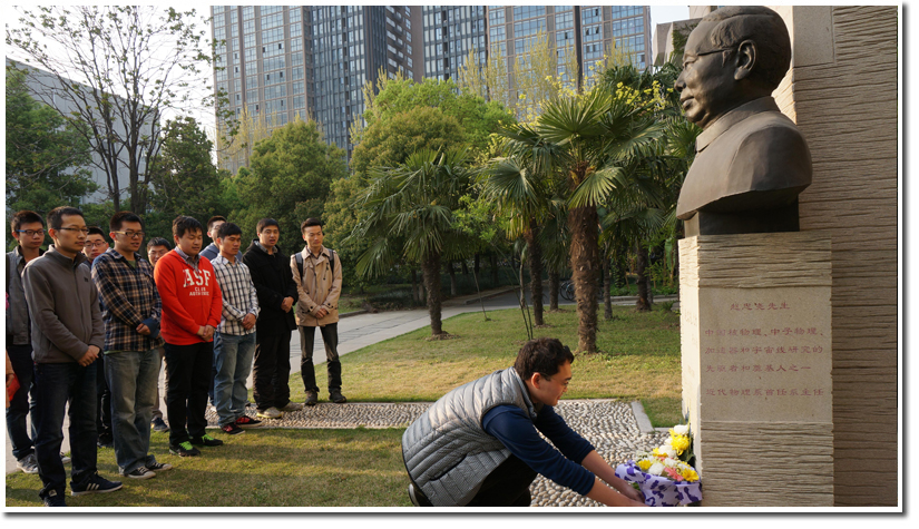 上午七点,天刚亮不久,同学们即按计划在南门集合完毕。大家怀着对科学前辈无比崇敬的心情,为郭永怀、杨承宗、赵忠尧老先生的雕像敬献鲜花,并认真听取了先生们的生平与科研事业,仔细体会老一辈科学家留给我们的伟大的爱国意识与科研精神。