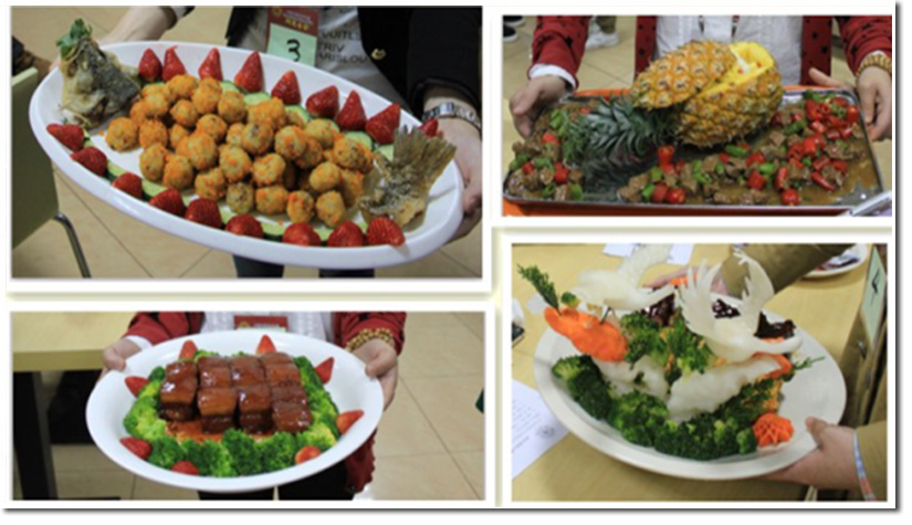 “炉上秀乾坤”是食堂厨师大显身手的环节,大厨们纷纷拿出自己的看家本领和拿手菜,为观众奉上一场精彩的美食盛宴,“鸿运当头”、“芝麻鱼条”、“西教核桃鱼丸”等佳肴赢得现场阵阵喝彩,最终评选出了金牌御厨、金刀御厨和九州名厨。“厨房展身手”是科大学子小试牛刀的平台,选手两两组队,配合默契,做的菜品色香味俱全,可谓深藏不漏,得到了专家评审和大众评审的赞许,最终评选出前三名最佳菜肴。“名师出高徒”则是大厨与学生搭档,共同完成指定菜品,这一环节不仅使得选手学到了大厨的秘籍,更重要的是增进了学生与食堂工作人员的感情。