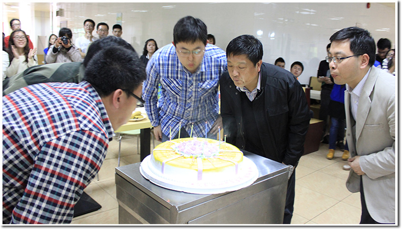比赛结束后,是“福星高照”环节。值此美食文化节诞生及食神大赛十周年之际,项目组邀请了今天生日的同学与食神大赛一起庆生,寿星与工作人员共同吹蜡烛吃蛋糕,在温馨的氛围之下第十届校园食神大赛落下帷幕。