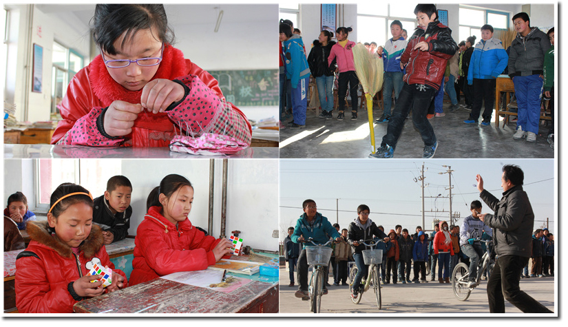 本次趣味体育竞赛分为五个项目。其中有“穿针引线”、“脚顶木杆”、“转魔方”与“慢骑自行车”四项个人项目,以及“大脚丫”一项集体项目。在活动中,同学们积极报名,热情参与,有的同学甚至参加了三至四个项目。个人项目中,选手们屏息凝神,专心致志,充分展示了个人的特长;集体项目中,大家齐心协力,高喊口号,操场上不时传来阵阵掌声。