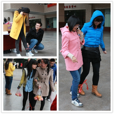 上午11:30,活动在东区活动中心广场正式开始。尽管春风料峭,却挡不住同学们积极参与活动的热情,纷纷投入到有趣的小游戏中。“齐心协力”环节考验的是小伙伴间的默契,需要参与的同学以两人三足的形式进行移动,在共同行走中增进彼此间的感情。别看形式简单,但着实让许多同学费一番功夫,方向不一、一快一慢时有发生,洋相百出的姿势在带来欢笑的同时也令同学之间更加亲密。