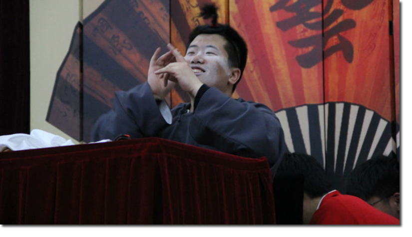 接下来三段节目分别是由张翌航、黄灿表演的《汾河湾》,金晔、卞云鹏表演的《俏皮话》以及黄灿、张湃表演的《白事会》。精彩的节目以及扎实的基础功底,引发了观众们一波又一波的喝彩声。