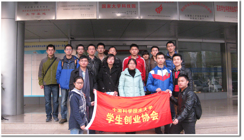 12月12日,中国科学技术大学创业协会2013“走访名企系列活动”之参观合肥国家大学科技园活动成功开展。经过20多分钟的车程,参与活动的成员在创业协会会长姚超的带领下,来到了位于合肥市高新区的国家大学科技园,受到了科技园的热烈欢迎。随后,在卫萍老师的带领下,同学们对园区的在孵企业进行了参观走访。